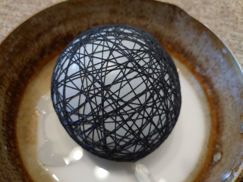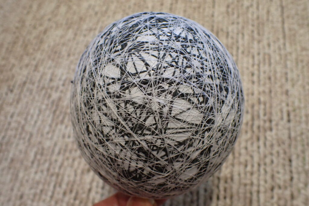 木工用ボンドを溶かした水に漬けながら、膨らませた風船に糸を巻き付けていこう。