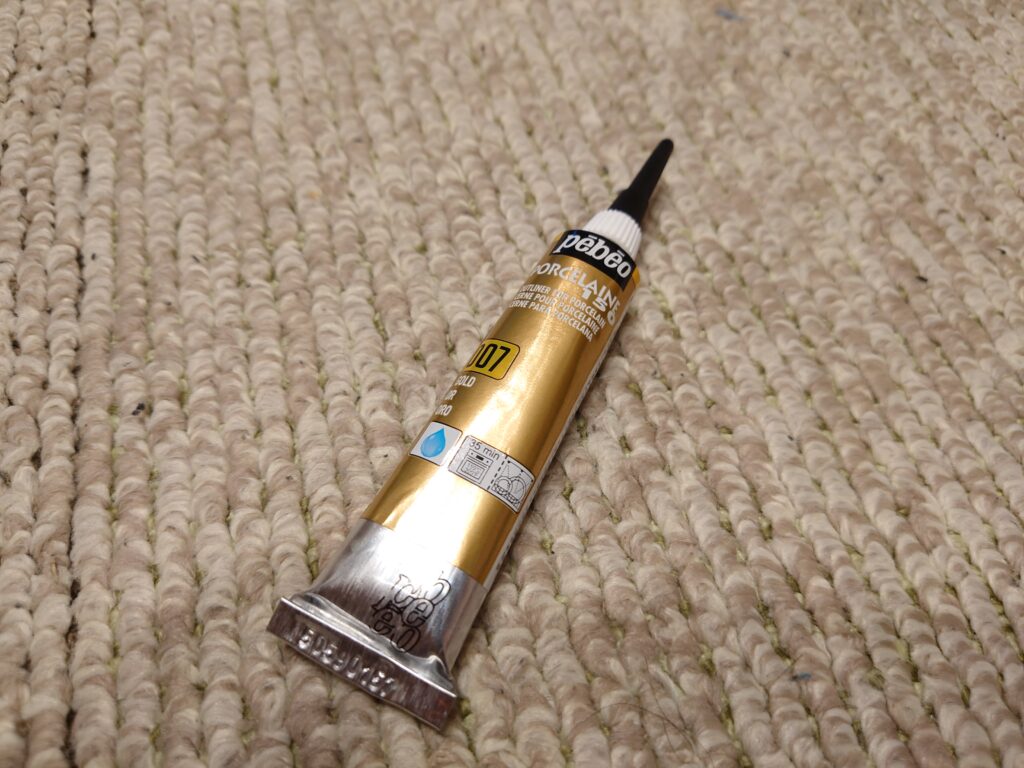 金継を実際にやるのは大変なので、金継風の絵具を塗っていく。