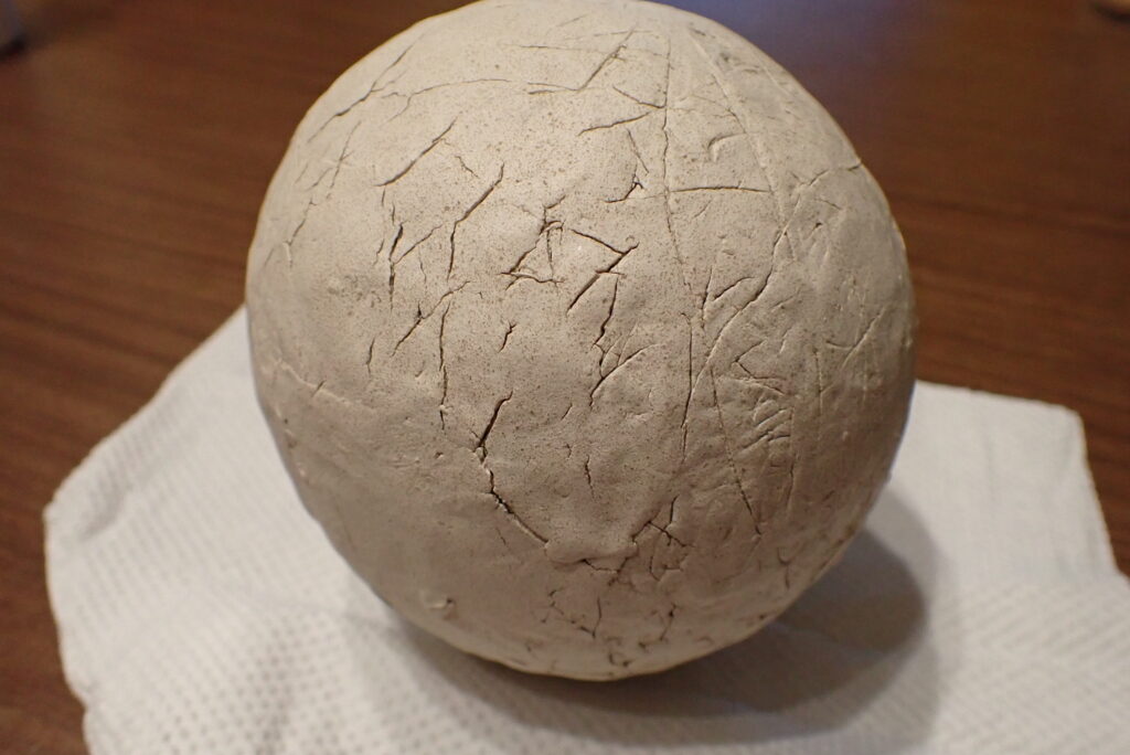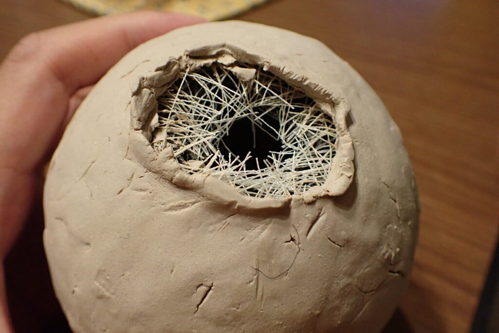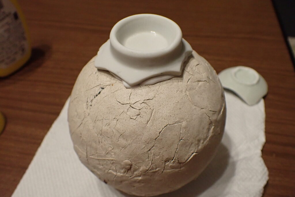 先ほど作った下地にシー陶器を貼り付け、ひとつの陶器に成形していくよ。